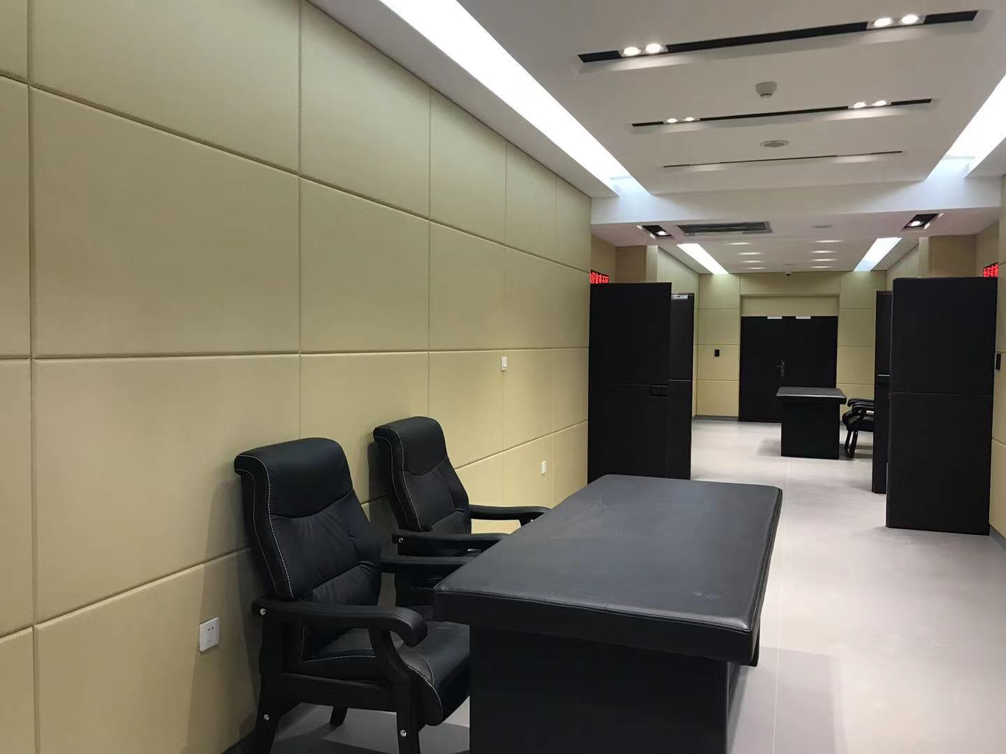 3、審問室防撞軟包裝飾美:審問室防撞軟包通過特硬處理,使四邊視點一致,拼合美感十分明顯,以往海綿及其它軟包無法做到的作用。并可依據(jù)聲學裝飾或業(yè)主的要求,調(diào)整飾面布、框的原料,美觀大方。